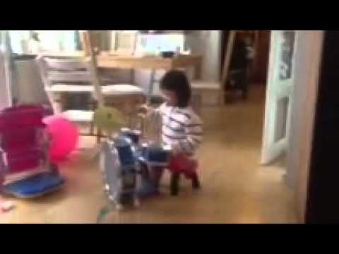 Och städar. Hon ser att mamma och pappa städer så ska hon också härma, jättebra ju!